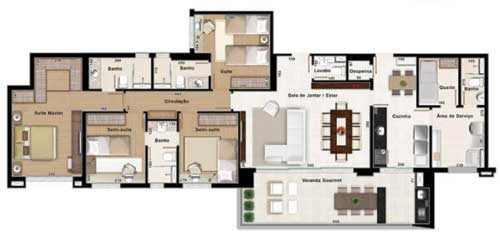 sendo 2 suítes e 2 semi-suítes, varanda gourmet